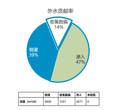 地下水等外來水入滲排水管道,是各類排水口旱天溢流的主要原因,也增加了雨天溢流頻次和溢流量。入滲水量不但占據(jù)了排水管道的容量,給排水管道、泵站運行帶困難,而且直接導(dǎo)致污水處理廠進(jìn)水污染物濃度降低,運行水量負(fù)荷增加,運行效能降低。